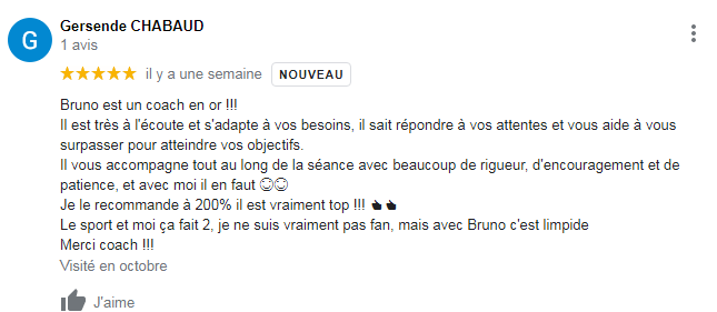 Merci à mes sportifs préférés de coachings pour ces avis qui je l’espère feront parti du début d'une longue liste ! Un plaisir de les avoir comme clients et d'avoir un tel retour.
